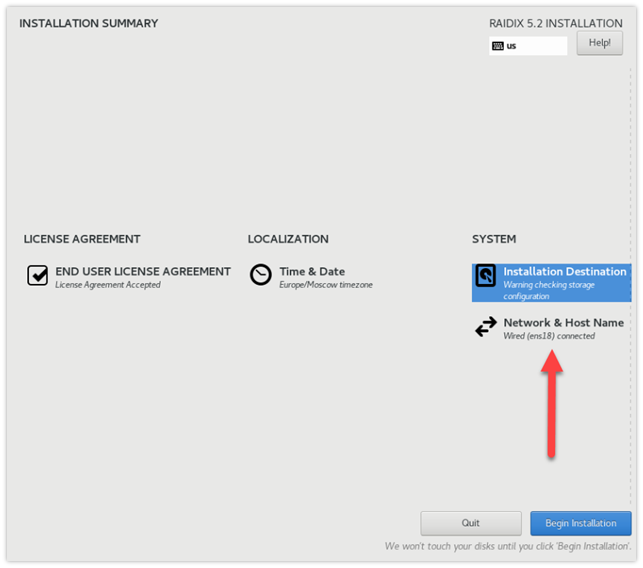 На странице INSTALLATION SUMMARY кликните Network & Host Name.