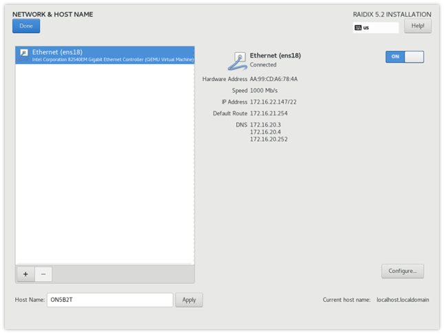 - После завершения настройки кликните Done в левом верхнем углу страницы NETWORK & HOST NAME.