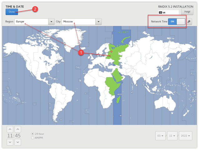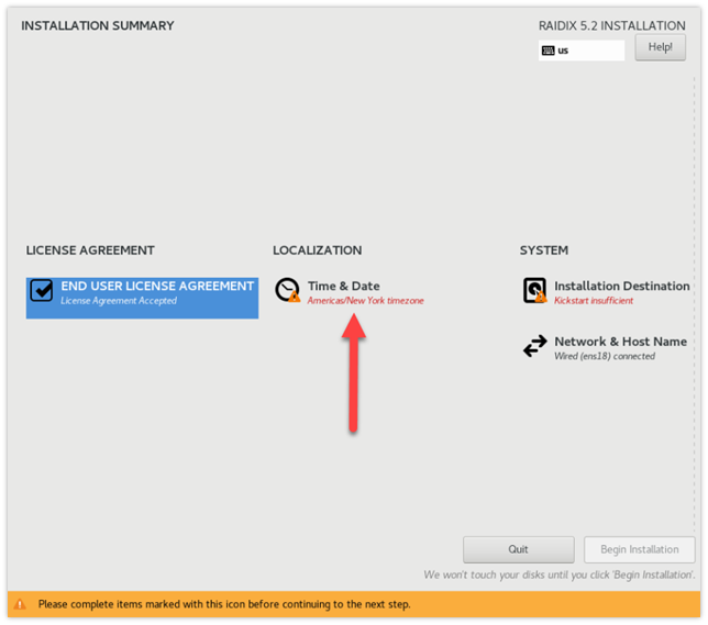 В окне INSTALLATION SUMMARY кликните Time & Date.