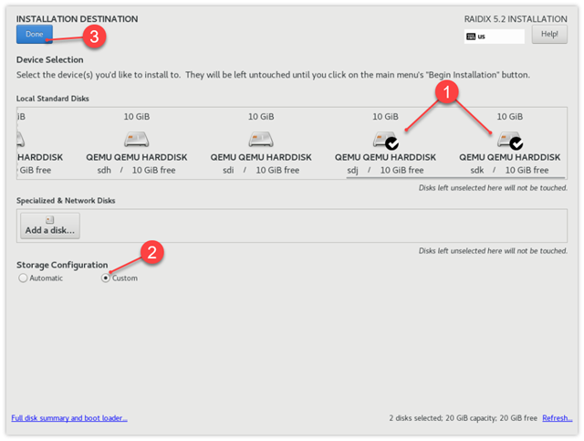 Рис. 8. Выбраны два диска для установки системы на RAID 1