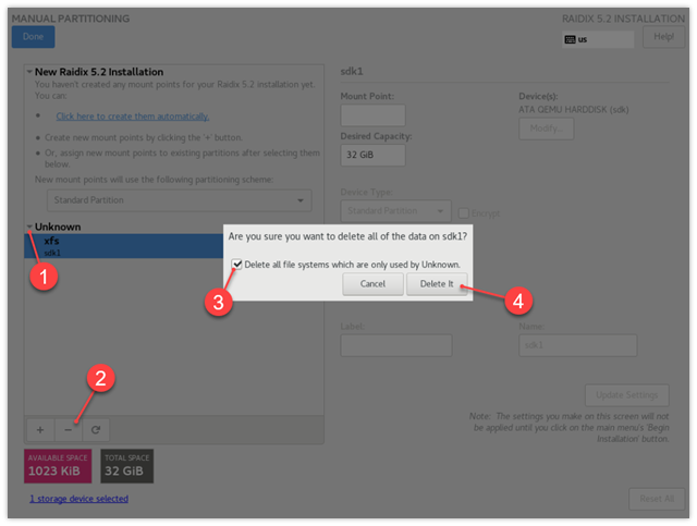 . - В открывшемся окне отметьте Delete all file systems which are only used by Unknown.