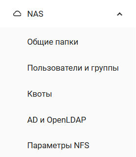 - Настройка NFS-сервера (подробнее в главе NAS-сервер).