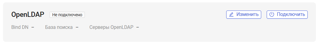 - В секции OpenLDAP кликните Изменить, настройте параметры подключения и кликните Изменить. Описание параметров см. ниже в этой секции.